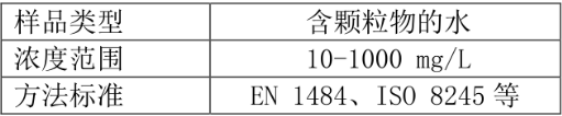 這些樣品中通常會帶有大量的不溶顆粒物,如沉淀物。在TOC測試時需要被計算進(jìn)去。國際標(biāo)準(zhǔn) EN 1484 和 ISO 8245 提供了一種方法去驗證不完全溶解樣品成分(顆粒物<100μm)的均質(zhì)化和回收,也稱為“回收率測試”。