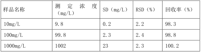 Xpert-TOC 測定含顆粒物的樣品,完全滿足EN 1484、ISO 8245方法,并且有極好的重復(fù)性和回收率,采用NPOC方法,五次測定的平準(zhǔn)值均展現(xiàn)了良好的的復(fù)現(xiàn)性,回收率范圍為98%-101%,重復(fù)性RSD<2.5%。